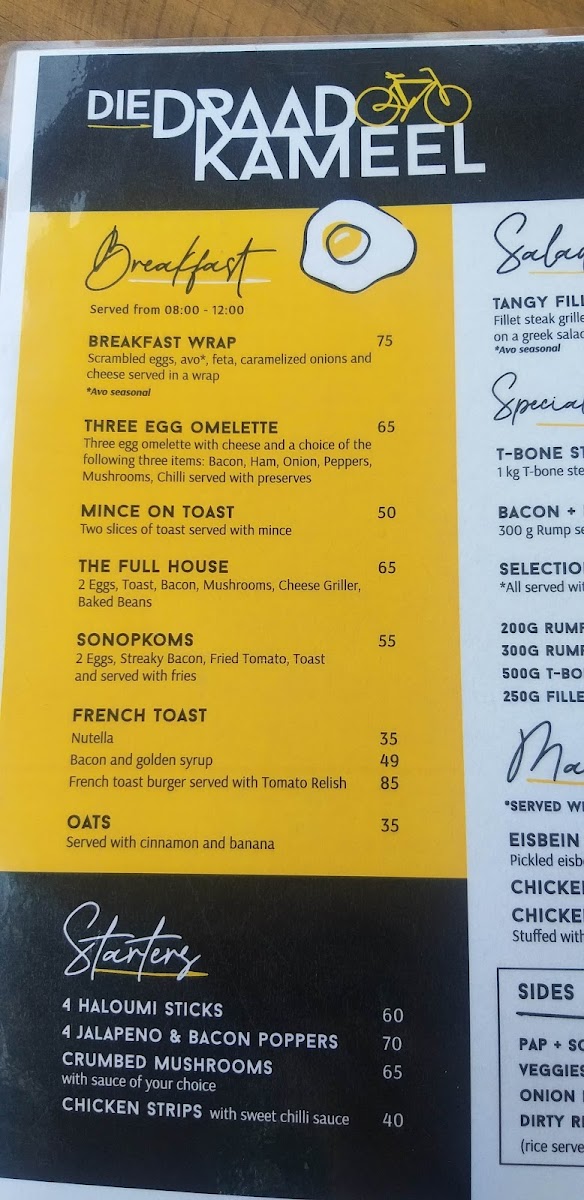 Die Draad Familie Restaurant Menu